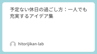 この“ストック”があるだけで、一人の休日はかなり充実する。完璧じゃなくていいから、小さく決めて、小さく動く。それだけで休日はちゃんと使えるようになるよ。